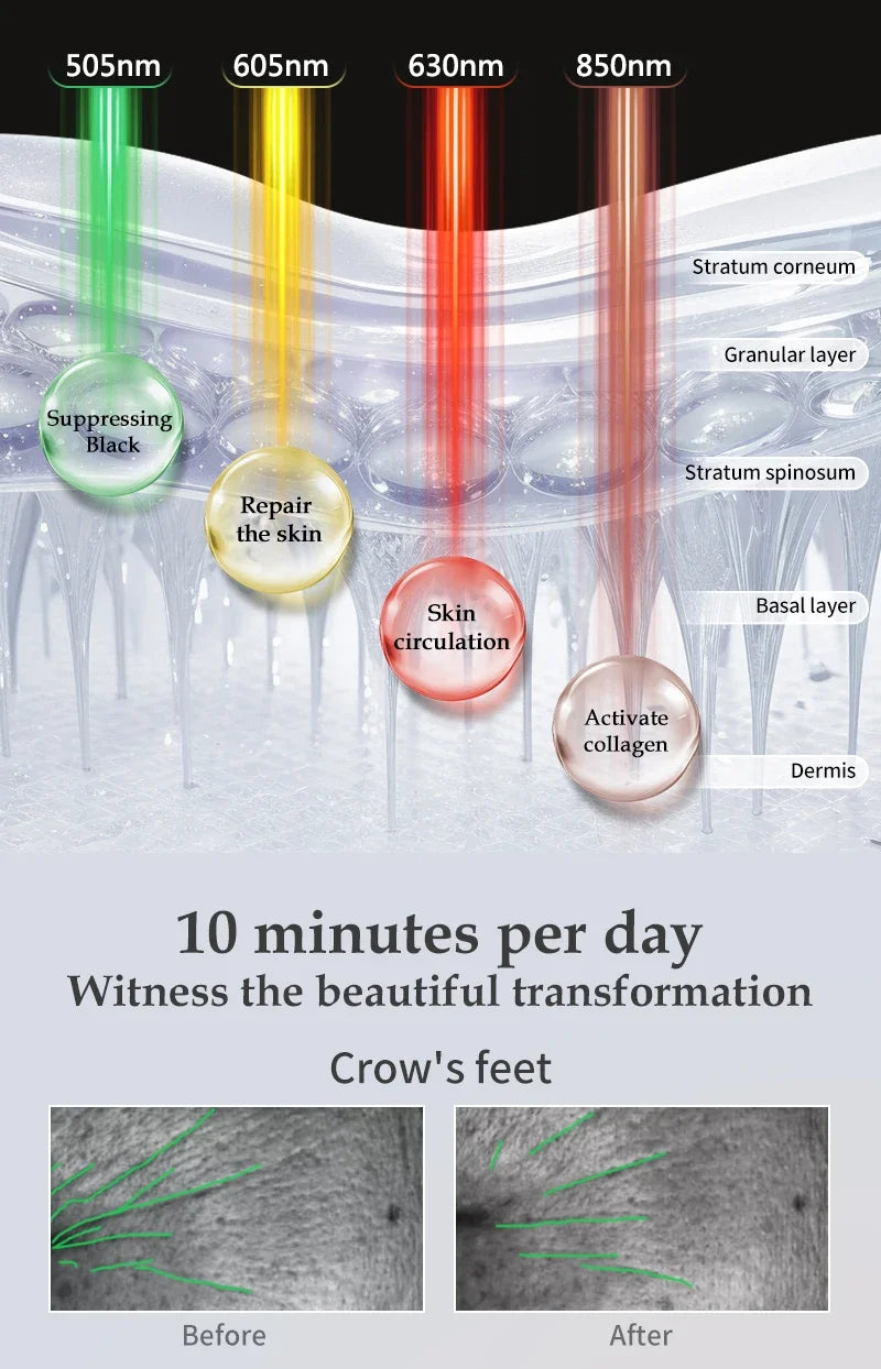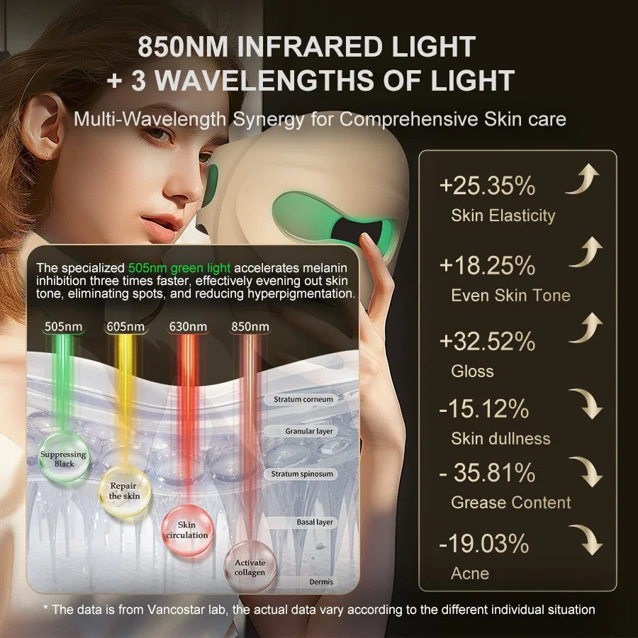 Grünes LED-Licht kann helfen, einen fahlen Teint zu verbessern und den Hautton auszugleichen – für eine sichtbar gesunde und strahlende Haut.